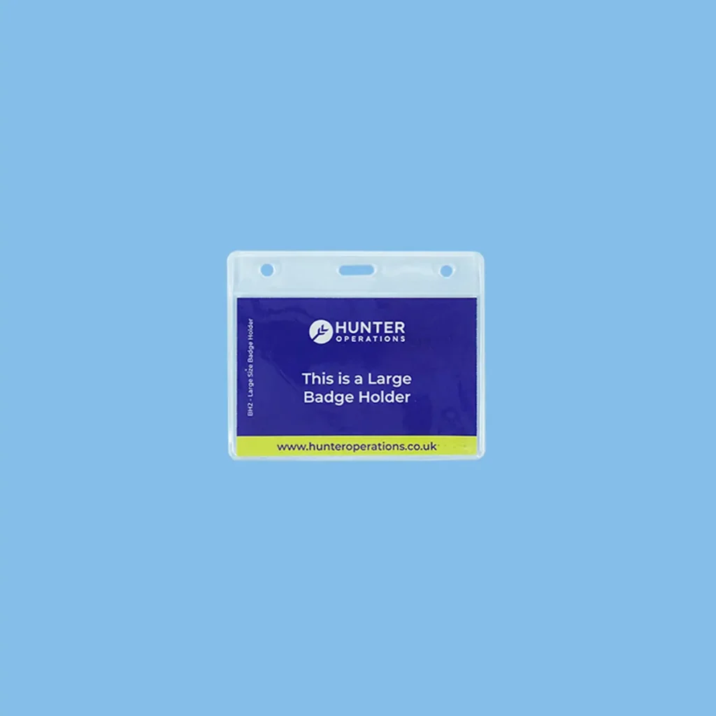 Large Badge Holders made from recycled vinyl provide extra space for bigger inserts - durable, reusable and ideal for a professional, eco-friendly display at events. (packs of 50)