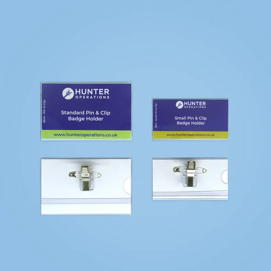 Pin & Clip Badge Holders pair a safety pin with a sturdy clip for secure attachment - durable, reusable PVC holders that work perfectly with our blank or pre-printed inserts. (packs of 50)
