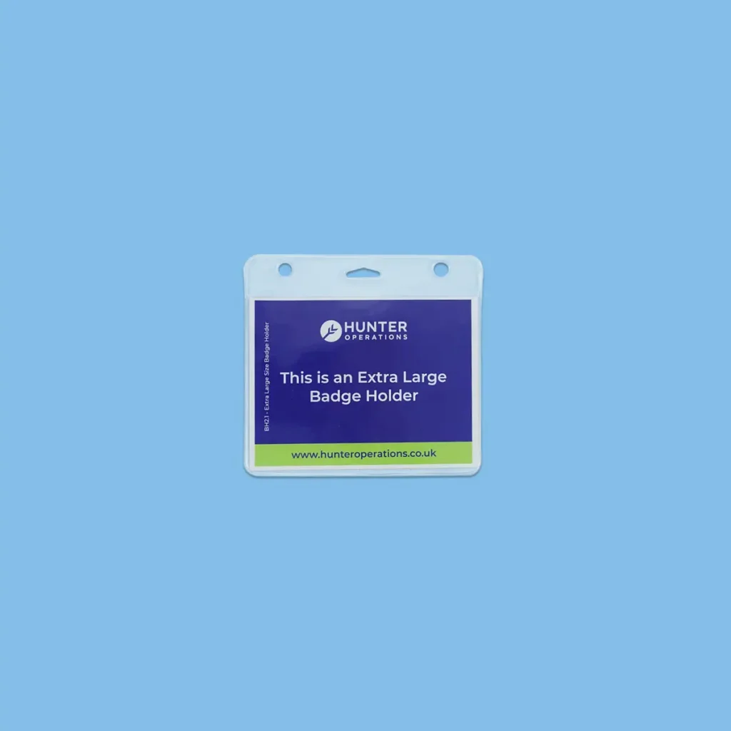 X-Large Badge Holders made from recycled vinyl provide extra room for oversized inserts - durable, reusable and perfect for conferences and large-scale eco events. (packs of 50)