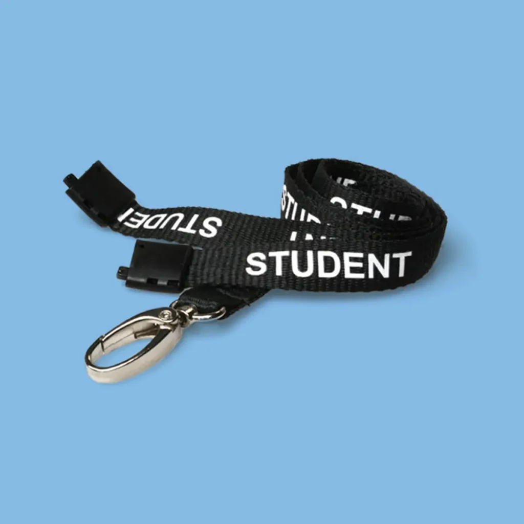 Printed Student RPET Lanyards are 15mm recycled-bottle lanyards - durable, recyclable and ideal for schools, colleges and universities focused on sustainability.