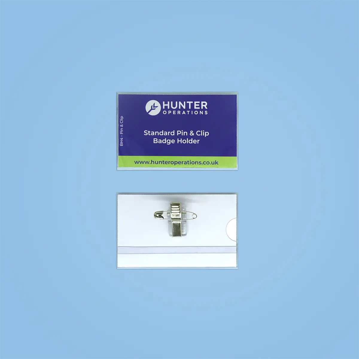 Pin & Clip Badge Holders pair a safety pin with a sturdy clip for secure attachment – durable, reusable PVC holders that work perfectly with our blank or pre-printed inserts. (packs of 50)