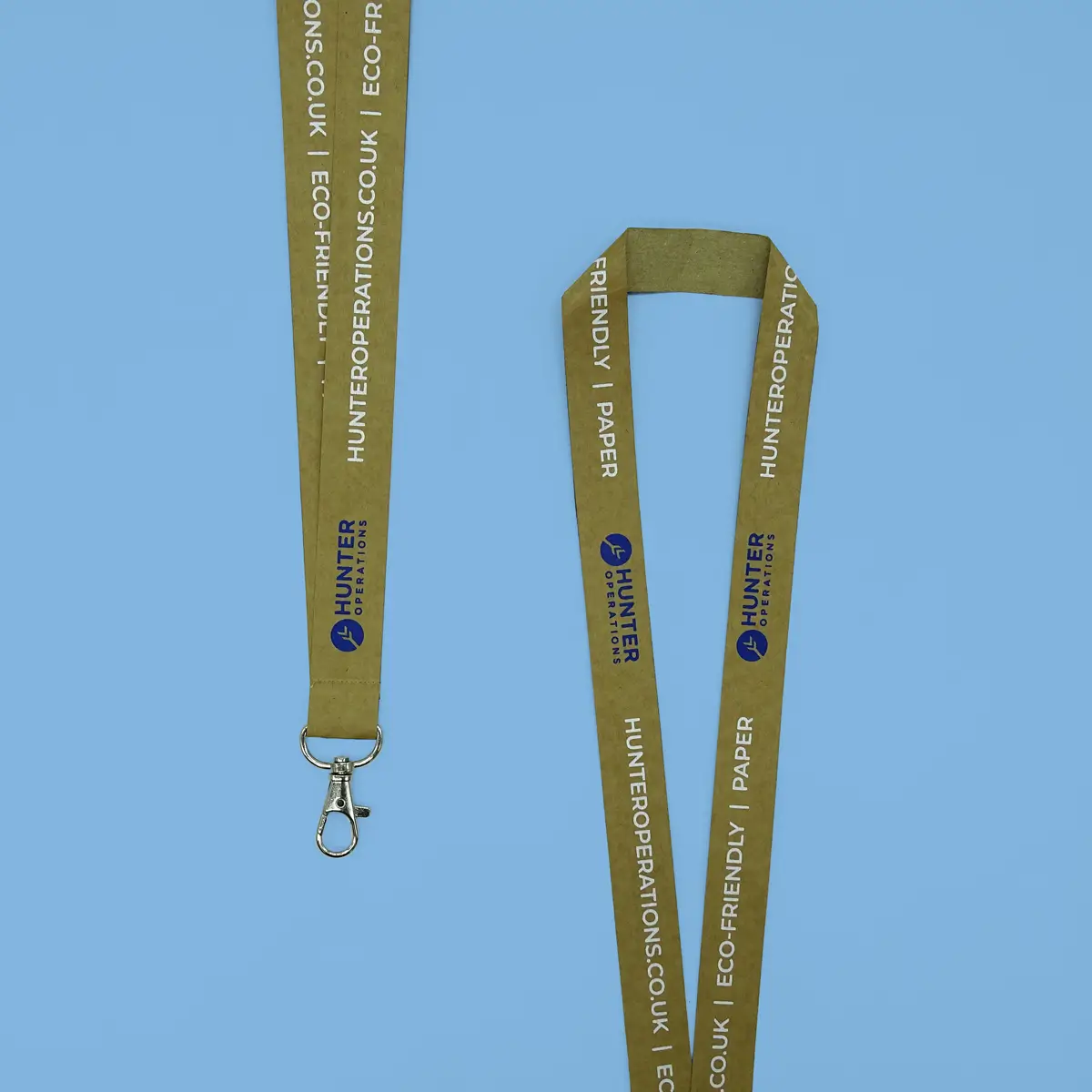 Printed Kraft Paper Lanyards are made from recyclable kraft paper – tear-resistant, biodegradable and ideal for sustainable branding or events.