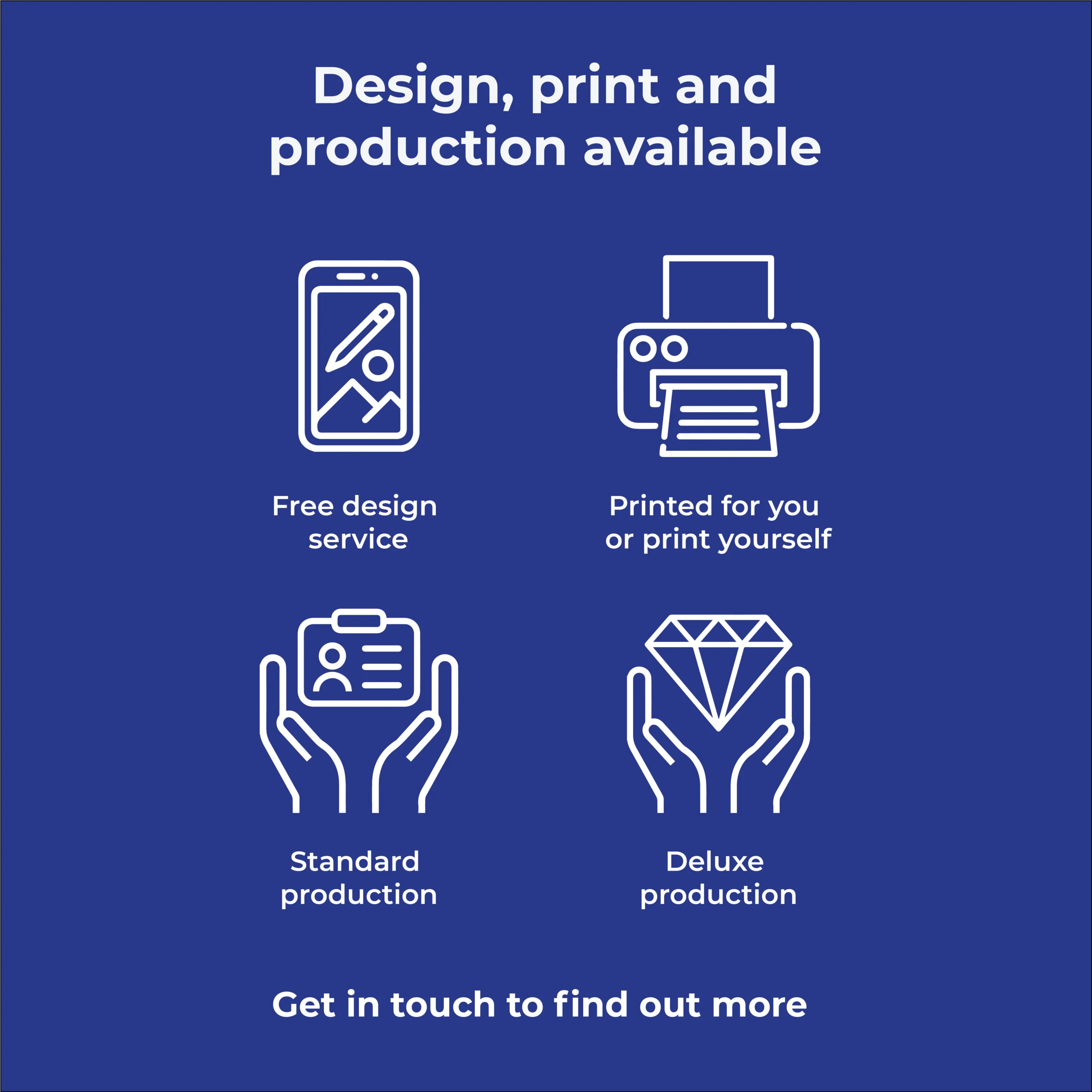 Choose to download templates for self-printing, or let us pre-print full colour designs and names using our professional digital printers.
