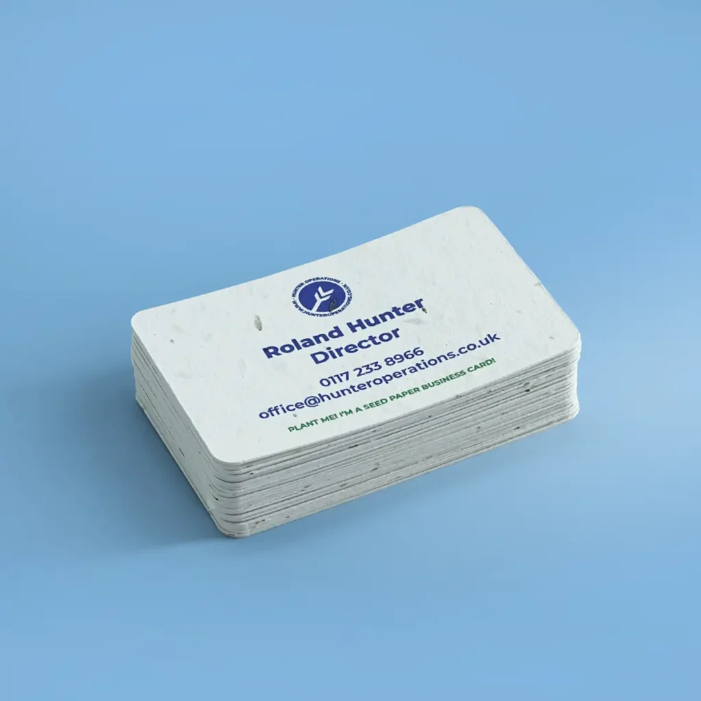 Printed Single Sided Seed Business Cards are made from plantable seed paper – eco-friendly and ideal for green networking and promotion.