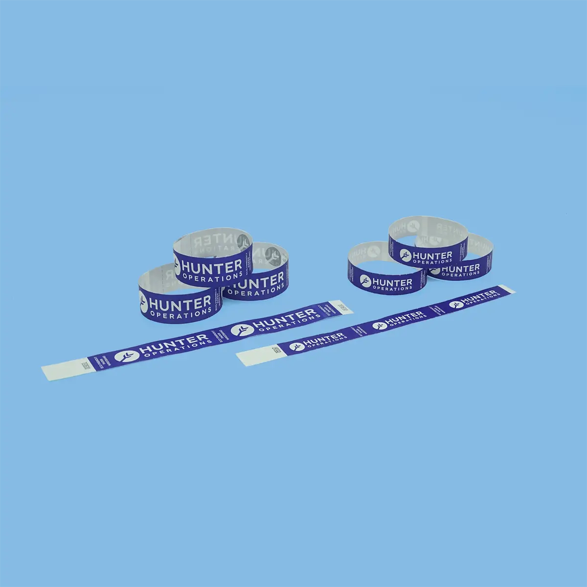 Each wristband includes tear-off numbered tabs and an adhesive non-tamper fastening for security.